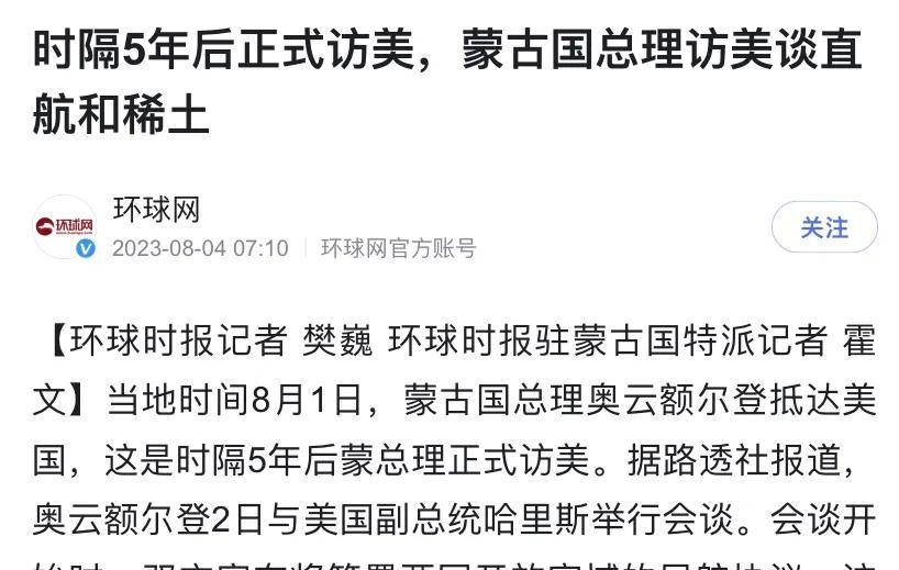木叔这篇国际评论,来分析蒙古总理访问美国的相关话题。