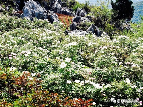 丫山向有"牡丹之乡"的美称。景区内拥有三个牡丹观赏园。收集中外牡丹品种繁多,有红、黄、紫、白、粉、蓝、黑、绿诸多花色,各色之间还有过渡色。有些花朵硕大,花瓣层迭高耸多达百叶,有些花龄长久,丫山牡丹王寿逾百年;还有些花色富于变化,甚是奇妙。每年四、五月份,各色牡丹和石林组成了壮观的花海石林奇景。