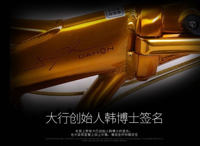 为纪念DAHON折叠自行车成立30周年,大行推出了一款全新的30周年纪念版KAA004。该车是大行创始人携手一批在自行车业界不断创造佳绩的研发团队研设而成,其外观采用了黑金色车身设计,车身采用铝合金高强度主体车架制成,为彰显其特殊性,该车标处印有特制的30周年纪念章标,车架上还有大行创始人韩德玮博士的签名烙印,值得所有大行的忠粉收藏!