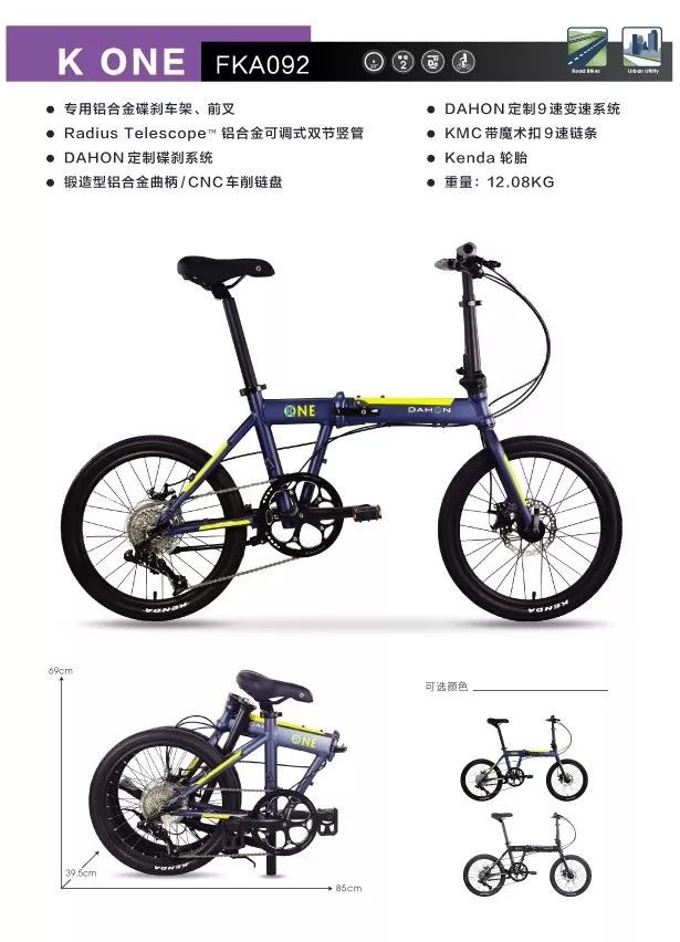 KONE是DAHON产品历史中第一辆2等级9速碟刹配置的车型,其性能和性价比是它的主题。因其轮胎大小,与姊妹款KAA433/K3刚好组成一大一小的CP,给我们留下了深刻的印象,无疑是DAHON折叠自行车的当红炸子鸡!