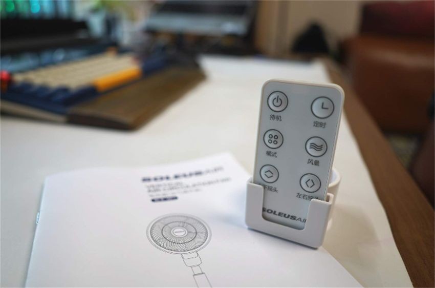 除了手动触控操作外,还自带遥控器,实现远程操作。夜晚睡觉,想给风扇定时,再也不用拿脚去踩按钮了(手动狗头)。