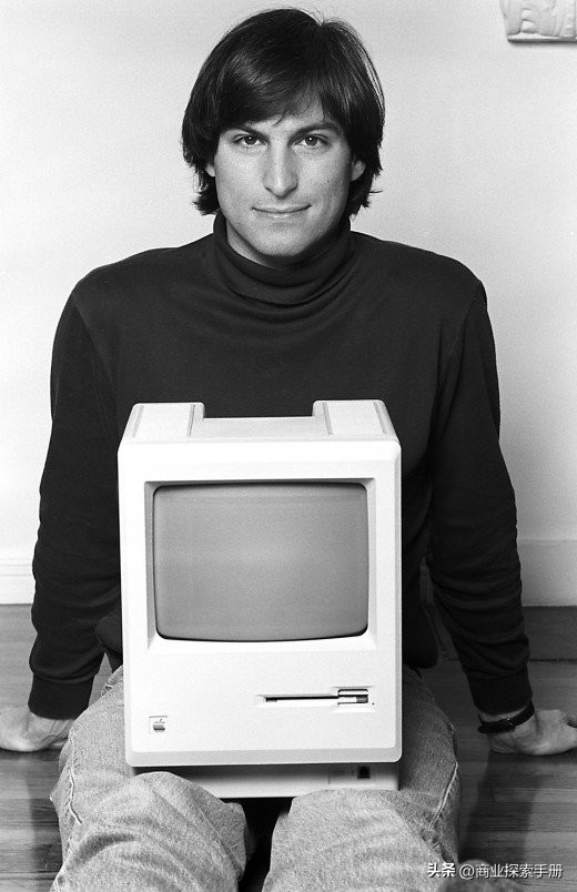 1984年,乔布斯席地而坐,腿上放着Macintosh。