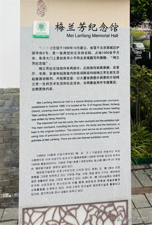 梅兰芳纪念馆于1986年10月建立,坐落于北京西城区护国寺街9号,曾是庆亲王府邸的一部分,经修缮改建后成为一座典型的四合院。1951年梅兰芳入住这里,他在这里度过了生命中的最后十年。记得上世纪八十年代,我曾参观过这里,当时纪念馆能参观的地方少,能看的内容也不多。今年是京剧大师梅兰芳130周年诞辰,据悉梅兰芳旧居主体修缮暨常设展陈提升重新开放是系列纪念活动之一。“来得早不如来得巧”。经过一年多的闭馆修缮和展陈升级,梅兰芳纪念馆在国庆节前以崭新的面貌重新开放,一想到马上就要看到刚开放且展陈升级的展览,我俩还有点小激动呢。
