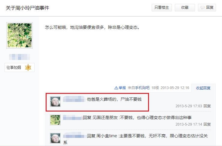 甚至在网上,还有人信誓旦旦地说,周小玲家是开火葬场的,所以尸油不要钱,免费拿。