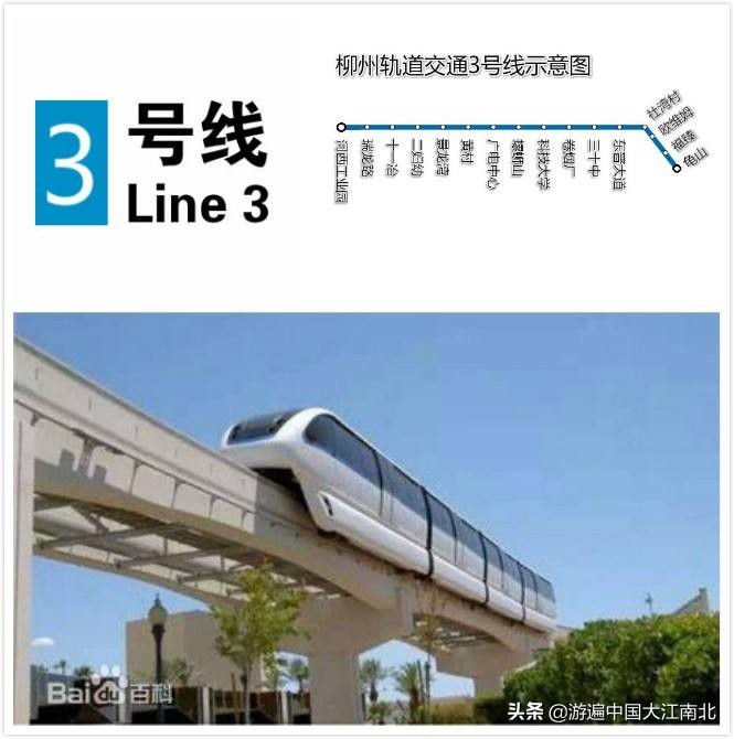 轨道交通3号线,线路标识色:天蓝色,柳州市正在规划建设中的第三条轨道交通线,起点由柳南区河西工业园站至阳和新区龟山站,是柳州市第二条东西走向轨道交通线,线路贯穿河西片区、黄村半岛、万象城商圈、静兰片区、古亭山片区及阳和新区,全长约22km,共设车站16座,其中换乘站4座,全线路高架运行,3号线前期规划审批工作已经展开