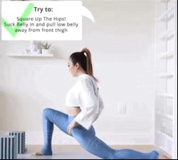 经过这样的调整,这类体式练习过以后:腰椎是放松释放的,臀部肌肉会被充分激活启动,大腿前侧和髂腰肌会被充分地拉伸,腹股沟打开伸展,髋关节灵活度增加,且骨盆紧致而稳定。