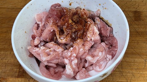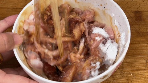 1、 猪瘦肉切丝,不好切可以放冰箱里冻一下,然后加入老抽,生抽,料酒,胡椒粉,淀粉,用筷子拌匀腌制10分钟