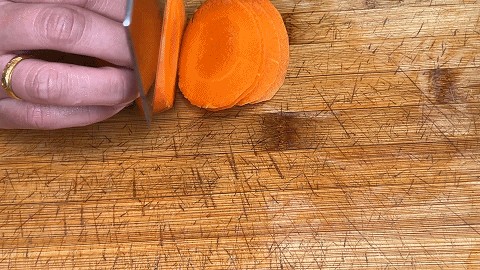3. 胡萝卜削去外皮切成薄片,接着改刀切成胡萝卜丝