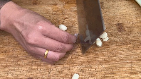 1. 将大蒜切成蒜片,切好放入小碗中备用,大葱也切成葱花,切好和蒜片放一起备用