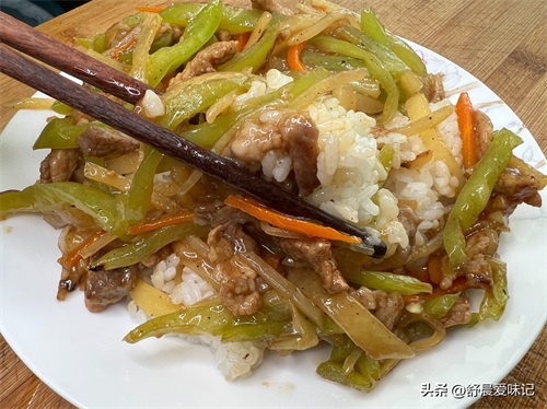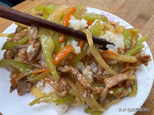 16元一份的肉丝盖浇饭,在家自己做,放青椒和土豆丝,量大料足