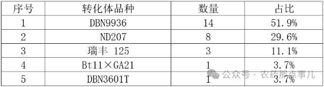 可以发现获批的品种转育的转化体以DBN9936为主,占比过半,排在第二位的为ND207,比例达到了30%,排在第三位的为瑞丰125,占比11%,大北农生物的总占比达到了55.6%,属于绝对的领先状态。