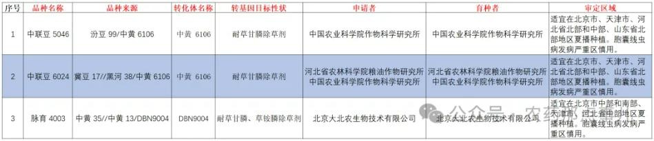 可以看到本次共有3个转基因大豆品种获批,两个中联豆品种转育中黄6106,一个脉育品种转育DBN9004,值得一提的是,目前我国下证的大豆转化体和转育其的大豆品种申请均为对应的同一家单位,无论是中国农科院作科所的中黄6106还是大北农生物的DBN9004。中国农科院作科所一般是与地方作物所联合育种和申请,而大北农生物是独家育种和申请,真正实现了从转化体到转育品种均属于一家单位,更有利于其商业化运作。