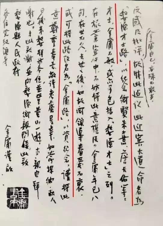 方教授还推荐给记者一封写给婺源县信函的片断,信中金庸老先生主要讲了关于迎宾大道的命名,建议命名为才子路,以此纪念朱熹、詹天估等徽州乡贤才士。文中还有一段:“金庸年已八旬,在世不久,去世之后,如故乡领导眷爱不衰,或可将此路改名为金庸路。以资纪念。”