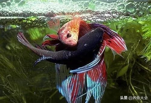 雄鱼在泡巢下紧紧抱住雌鱼,雌鱼会不停的产下白色的卵子,这时雄鱼开始对卵子排出精子,使卵子受精。全部受精完成后,雄鱼才会放开雌鱼然后将受精卵放到泡巢内。之后雄鱼会一直静静的守护着受精卵,等待其孵化成功。