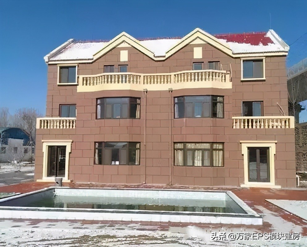 这样一栋EPS模块保温自建房,25cm厚墙体保温效果相当于3.2m厚砖墙,抗震性能可以达到8级,保证了安全性的同时,大大节约了因取暖制冷而消耗的大量能源!而且它整个建筑过程没有砌筑工程,节省了大量的人工和建造时间。