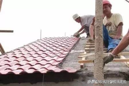 屋面结构完成后,先做一层挂网抹灰砂浆找平层,作为SBS防水层的基层,之后再在SBS防水层上粘贴瓦屋面。