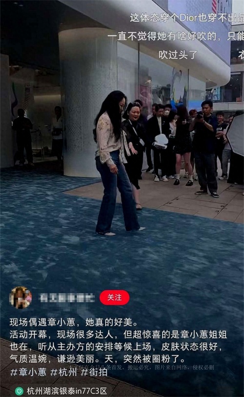 6月1日,一位网络用户在社交媒体上分享了章小蕙在杭州活动中的一段视频,这个举动出乎意料地引发了广泛的争议。视频以生图形式呈现,没有任何滤镜的修饰,呈现出了章小蕙最真实的一面。在画面中,章小蕙穿着一身花色上衣,搭配着紧身牛仔裤,着装相对休闲。