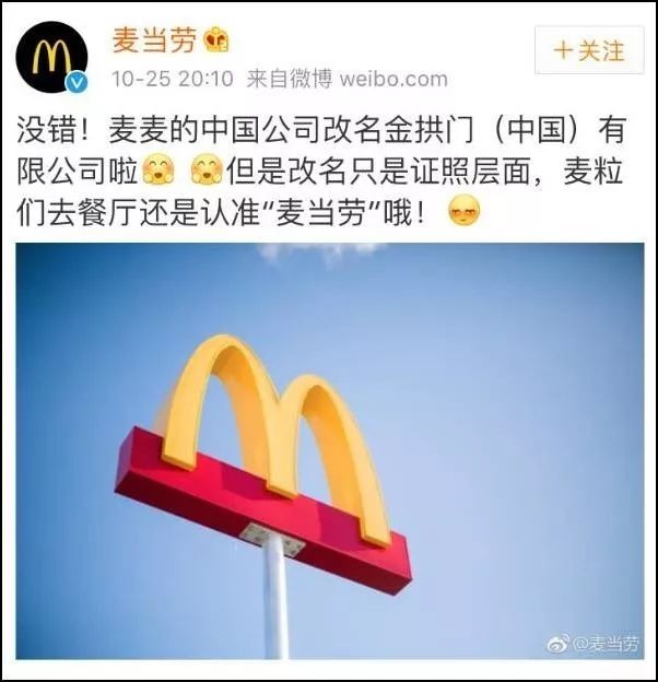 随后,麦当劳官方微博也发布消息,称改名只是证照层面。