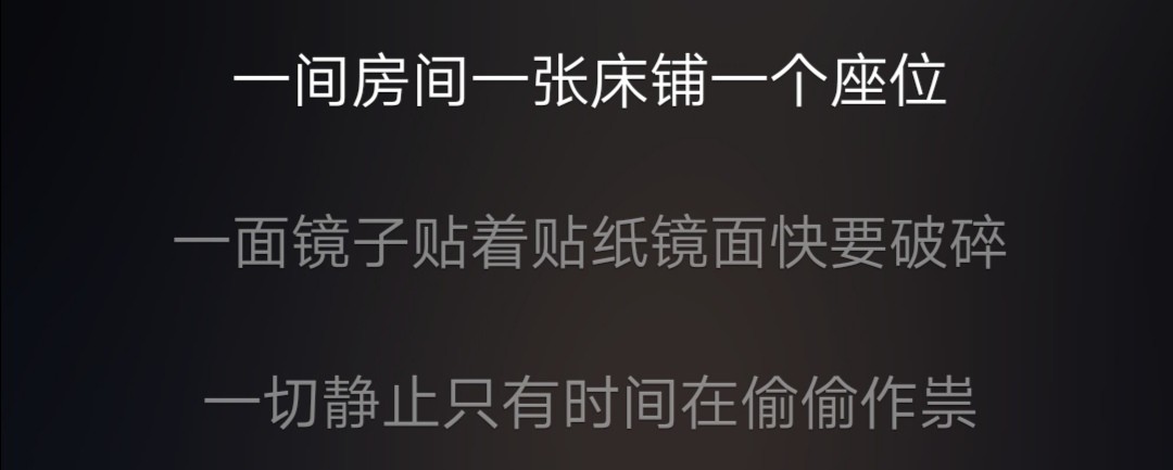 一间房间一张床铺一个座位 一面镜子贴着贴纸镜面快要破碎 一切静止只有时间在偷偷作祟