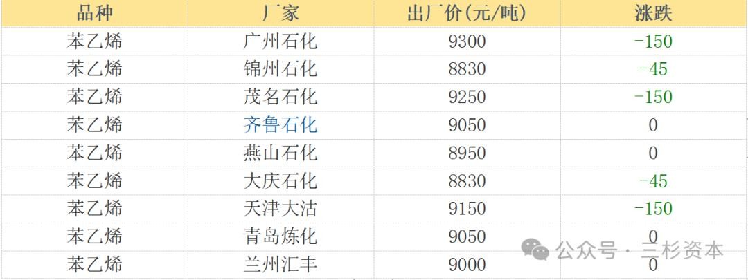 苯乙烯出厂价