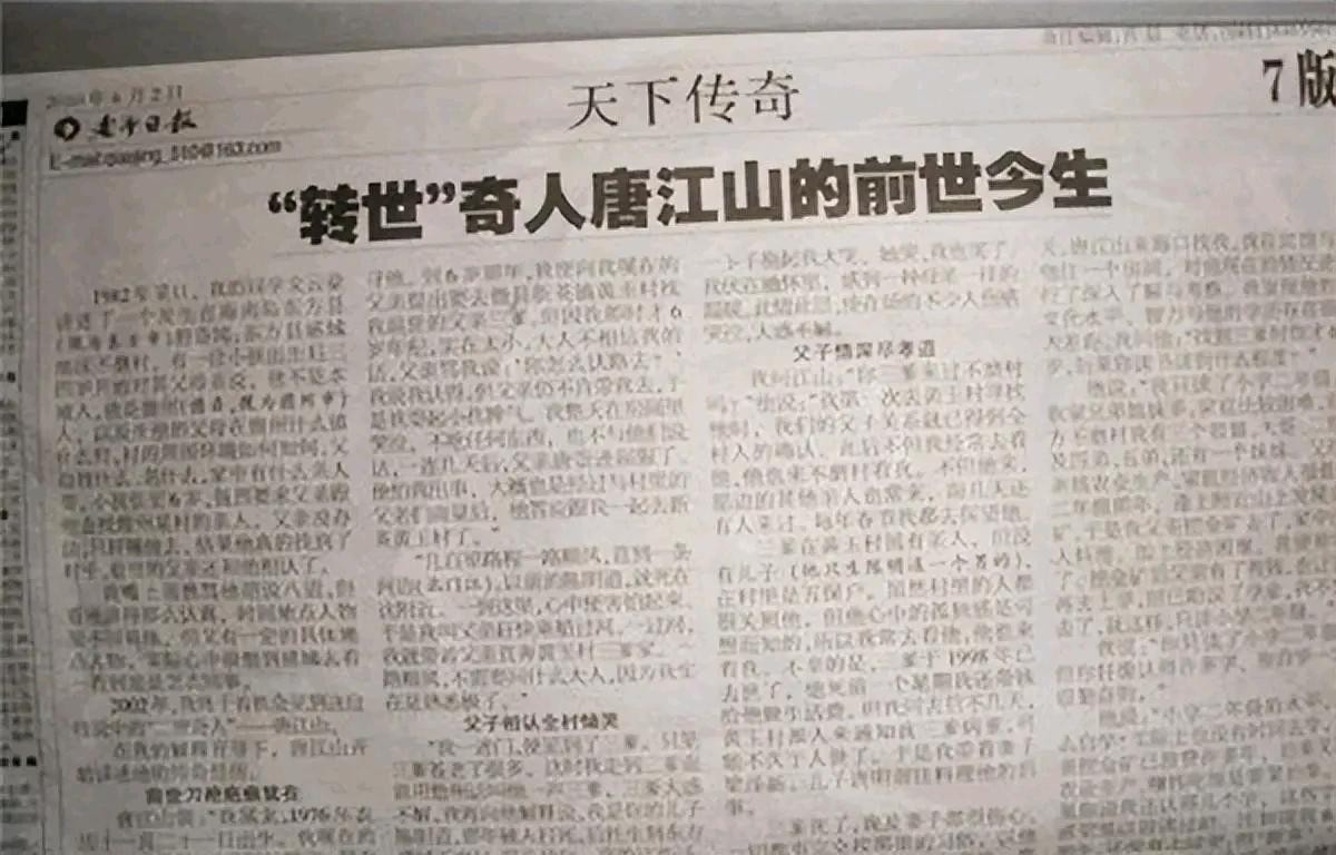 大千世界,无奇不有。海南东方市的一个村庄出现一位“转世人”,他叫唐江山,1976年出生。他三岁那年,刚刚学会说话不久,就常跟父母说,他其实叫陈道明(他的前世),家在海南儋州新英黄玉村。当时,父母并不在意,以为孩子在胡说八道。