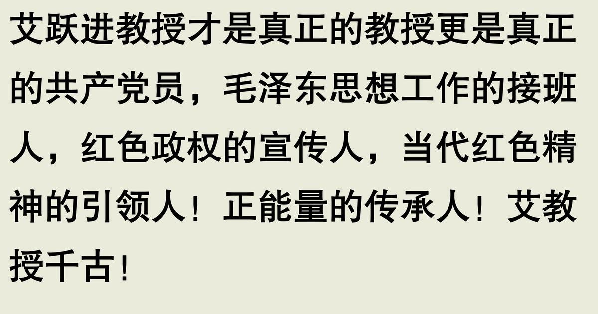 艾教授在当下是人中龙凤。有几个人敢直言,都是见风使舵,或是趋炎附势之徒。为艾教授点赞