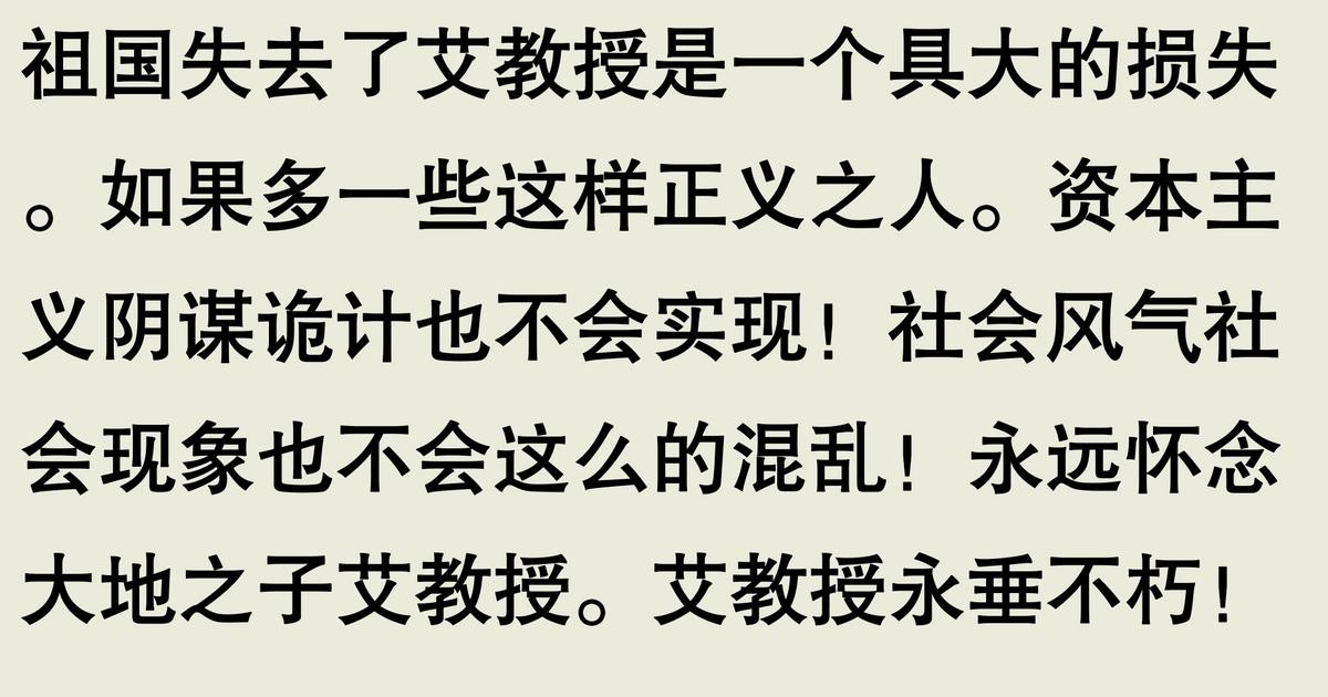 艾教授是一名真正的民族战士,也是一名值得钦佩且正义的学者,更是一名传播爱国主义思想的伟大教育家!