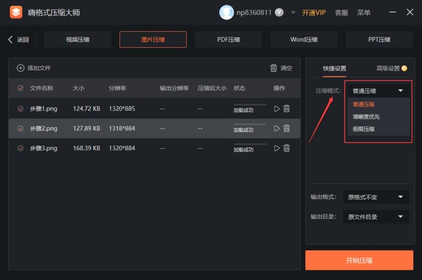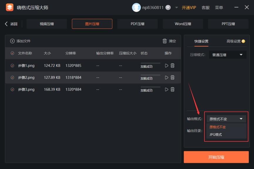 5、最后点击【开始压缩】完成图片压缩。