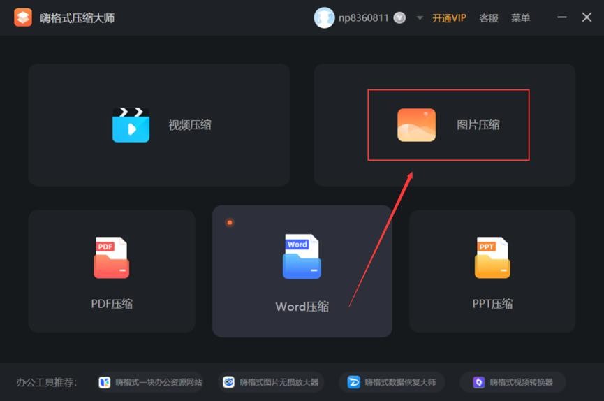 1、在电脑上打开软件,点击软件首页的【图片压缩】功能。