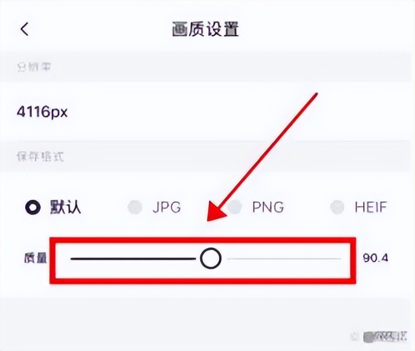 4、在画质设置页面,滑动质量栏【圆形滑块】,将图片质量调低。