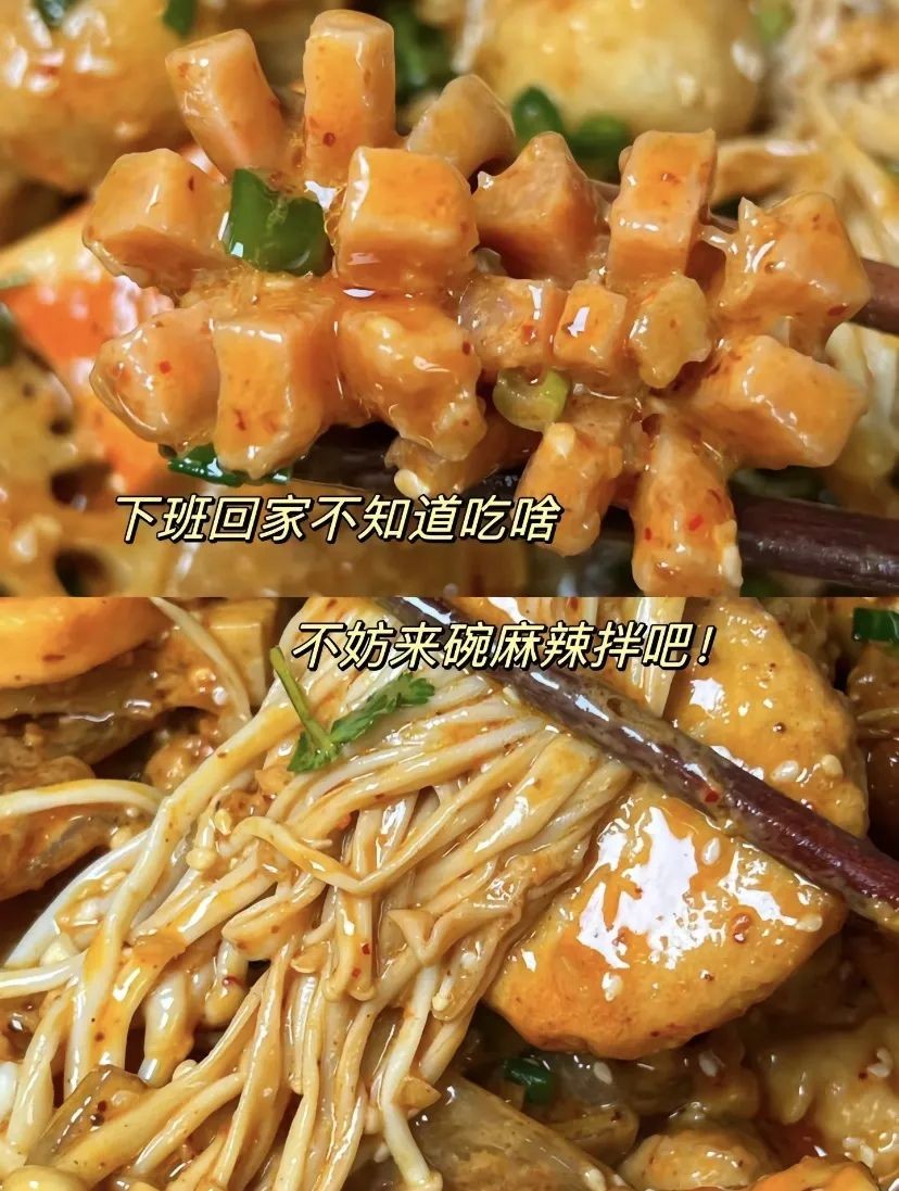 2 / 把喜欢吃的食材下锅煮熟,控干水分,倒入调好的酱汁,拌匀就可以开吃啦