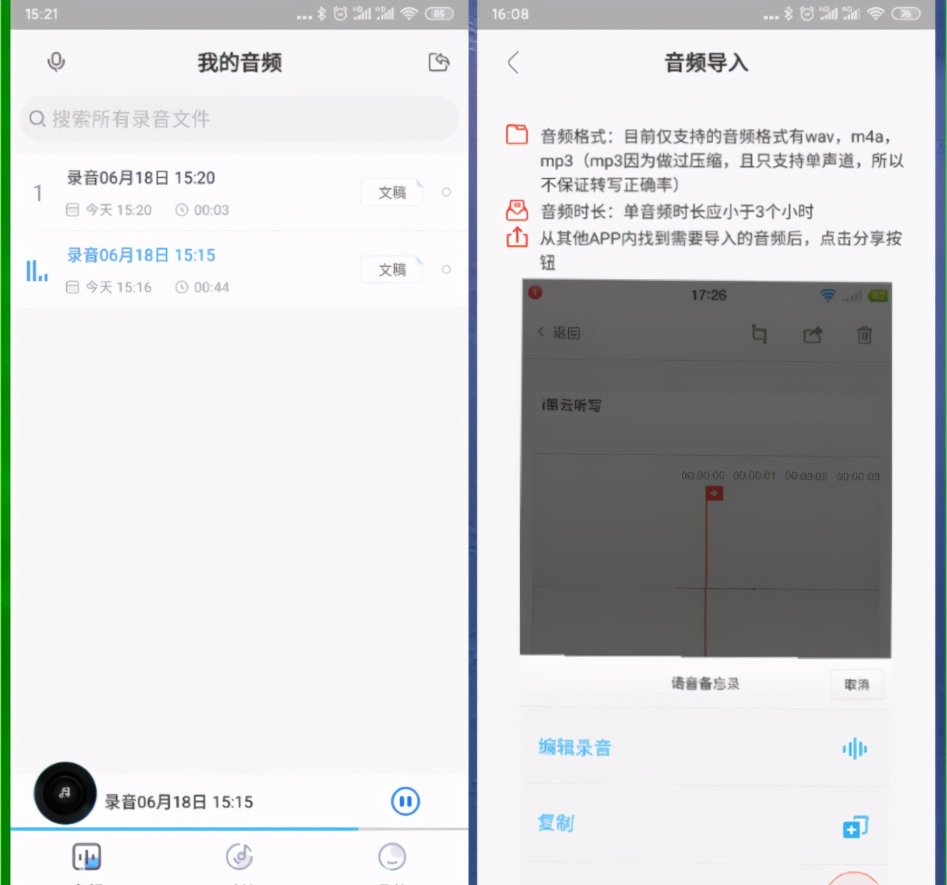 i笛云听写支持录音转文字、播放音频、多端同步功能、外部文件导入、分享等。