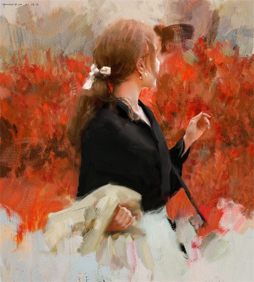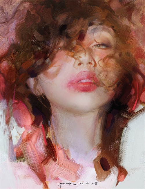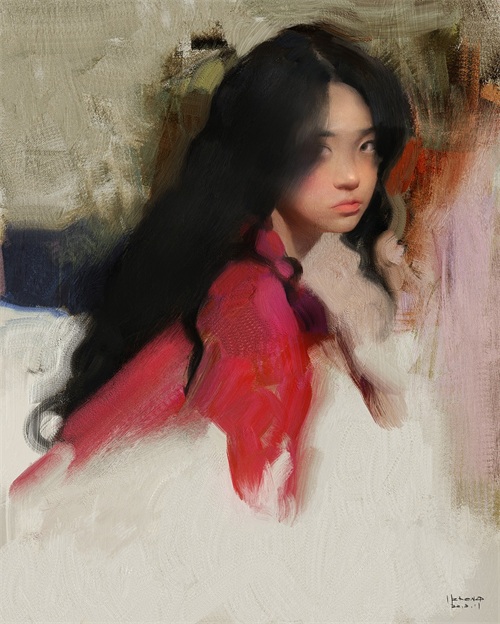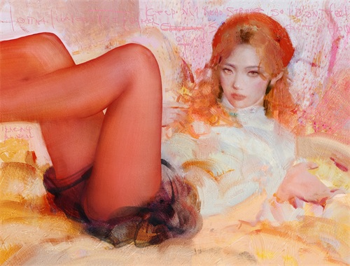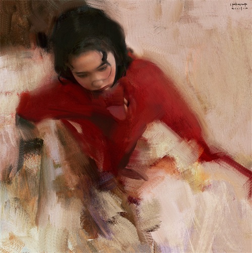 这一系列人物画作品聚焦年轻的女性,大多采用红色调,表达少女们出“青春正当红”的风采。画面虚实结合,让人实实在在感受到青春的活力,又有一种朦胧的美,给观者带来独特的视觉体验。
