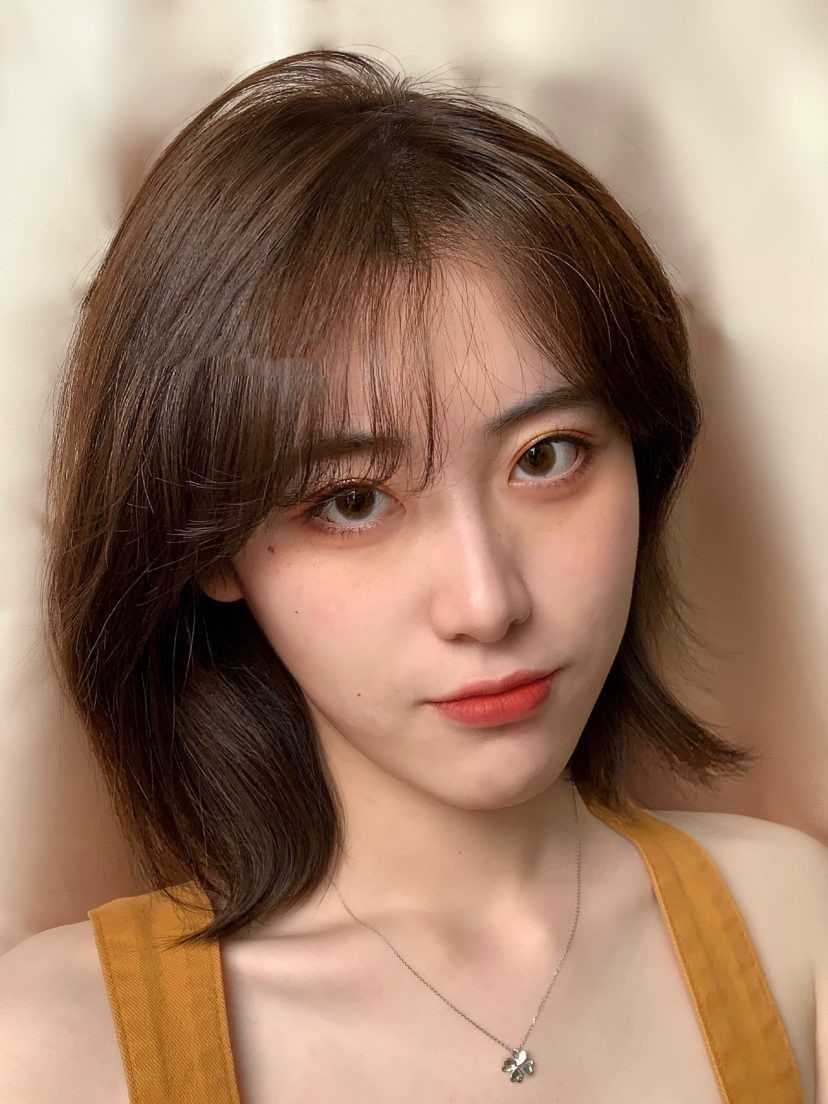 留长,发尾内扣,很适合过渡期。两侧的饰头发修饰脸庞的作用,搭配刘海显脸小,好看又减龄。在家用卷发棒轻松解决。