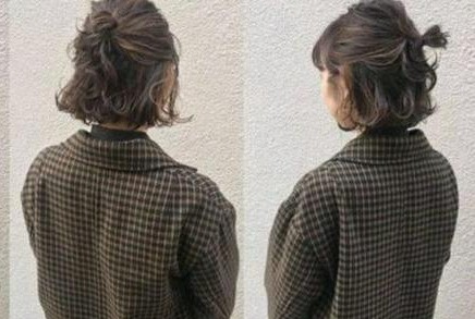 半扎丸子头,可爱又随性。简单易上手,很适合过渡期哦。短发烫的女生更适合,很有蓬松与线条感,这样造型才会更好看喔 。