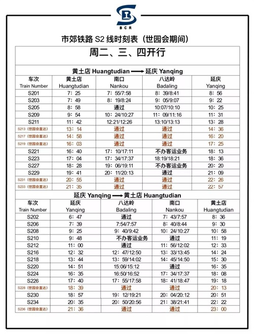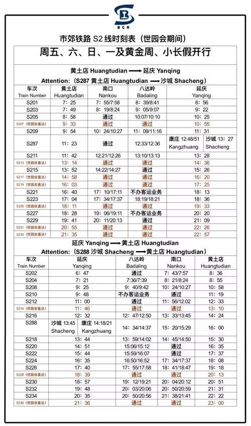 注:目前网络上S2线时刻表版本较多,回复“S2”查询延庆火车站独家提供最权威的时刻表。