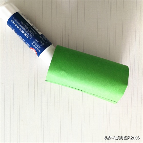 把对面拉过来粘到刚才涂胶的位置,粘好后是一个圆筒形状,如下图所示