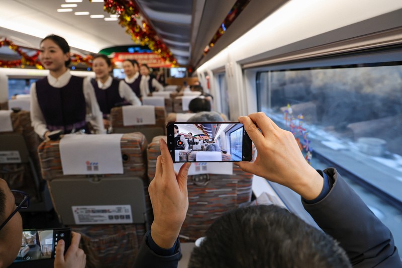 据悉,G912次智能复兴号动车组列车开行后,长白山至北京朝阳的G3603次列车也将更换智能复兴号动车组车体,通过高铁服务“软硬件”的同步提升,擦亮吉林高铁“名片”,更好助力吉林经济发展,推介吉林文旅精品,为旅客出行提供更加安全、温馨、高效、优质的运输服务。