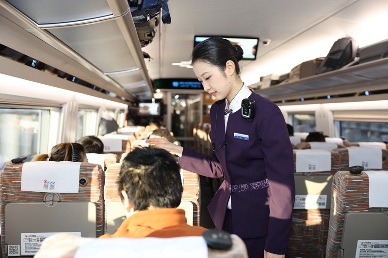 此次新配属的CR400BF-GS型复兴号技术提升智能动车组配备了车载传感器、通讯系统、控制系统以及车载娱乐系统等尖端技术,能够实现对列车的实时监控和操控,安全性、舒适度和便利性都有极大提升。从内部环境看,“智能复兴号”配备了更加舒适的座椅、更先进的空调系统、更高规格的音响和电影娱乐系统,在细节上也更多地体现了人性化、个性化。比如在一等座和二等座增加USB充电接口,适度增加小桌板的凹陷深度,为商务座车厢配备智能交互终端和智能照明系统等,可以更好地满足不同旅客的出行需求,提供更加舒适的乘车体验。
