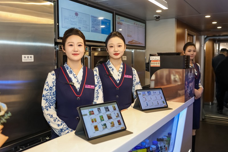 “为满足商务旅客快节奏、高品质的生活需求,我们在商务座车厢配备了平板电脑,搭载智能点餐系统,提供‘管家式’服务。商务座旅客可实现餐食、饮品的现场预定,享受随叫随到的便捷服务。”动车二队队长王雪向记者介绍。