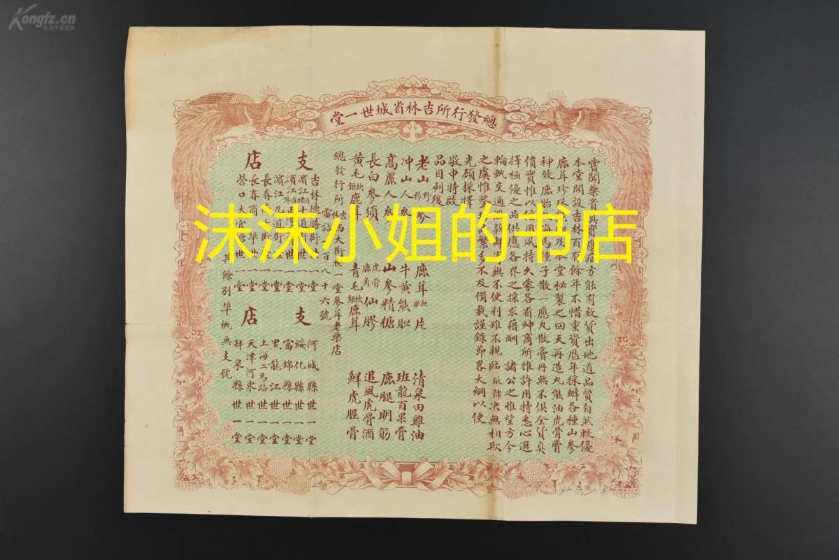 (乙4198)民国时期 吉林省城世一堂 彩色宣传单1张