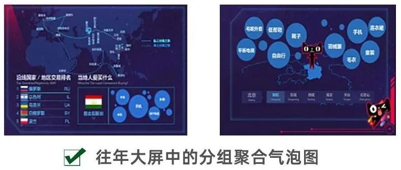 一直以为【分组聚合气泡图】相对比较冷门,没想到天猫的双11大屏里用了不止一次两次。