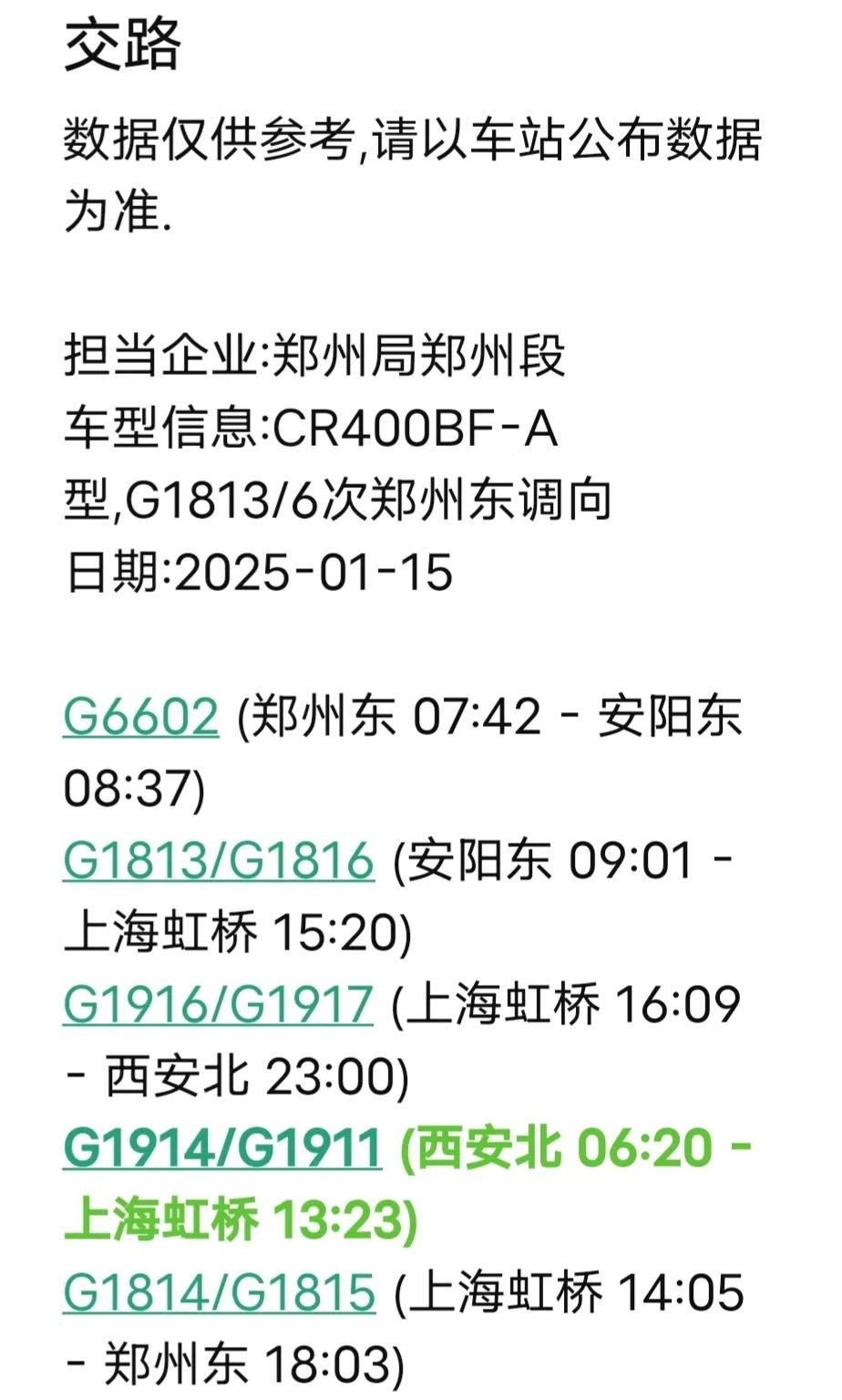 看到这里,会有人问,是不是只有经过天津后,列车车次才会变化呢,答案当然是否定的。列车经过哪些城市会发生变化呢,比如我们熟悉的铁路心脏之称的郑州、京沪上的转折徐州还有武汉等等,其实列车车次发生变化主要是因为列车运行的过程中前半段可能是接近北京方向,后半段是远离北京方向。但是从北京发出的列车,不管旅途有多远,其实车次都是不会变化的,但作为铁路的心脏,从郑州发出的列车车次也就会发生变化。比如说从郑州东开往上海虹桥的G1914,列车从郑州到徐州车次一直是G1914,而列车经过徐州站时,车次就会变成了G1911,但反向列车用的却是G1916和G1917.不是我们应该认为的G1912和G1913,这其中就有另一个问题就是“交路”。“交路”主要是一列动车组不止跑一条线路,而是多条线路,既能增加运力,又能提高动车组的使用率,毕竟一列动车组也不便宜的,早日回本才能增加铁路效益。