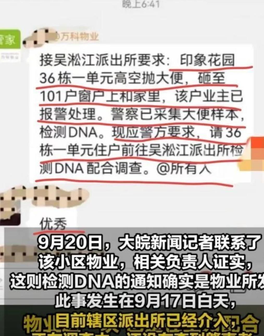 一个住在30楼的业主,大概是觉得生活太过平淡,一时兴起,竟将一坨粪便从窗口抛出。