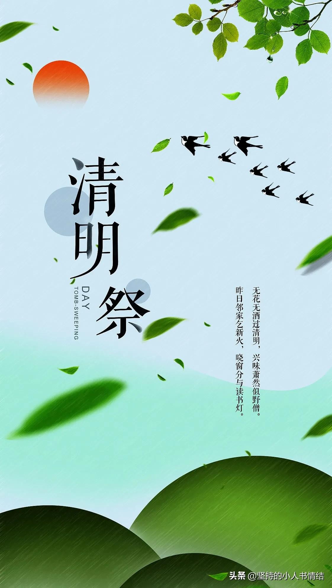 清明节是我国传统的二十四节气之一,同时也是一个隆重盛大的祭祀节日。在这天自古就有给逝去亲人和祖先扫墓祭拜的习俗,来寄托对逝去亲人的缅怀和思念之情。清明节还叫“踏青节”,因为此时万物复苏,春暖花开正是走出家门,旅游观光的大好时机。