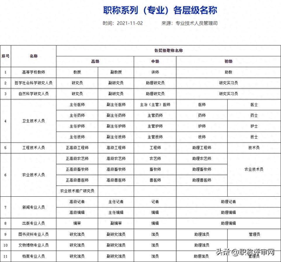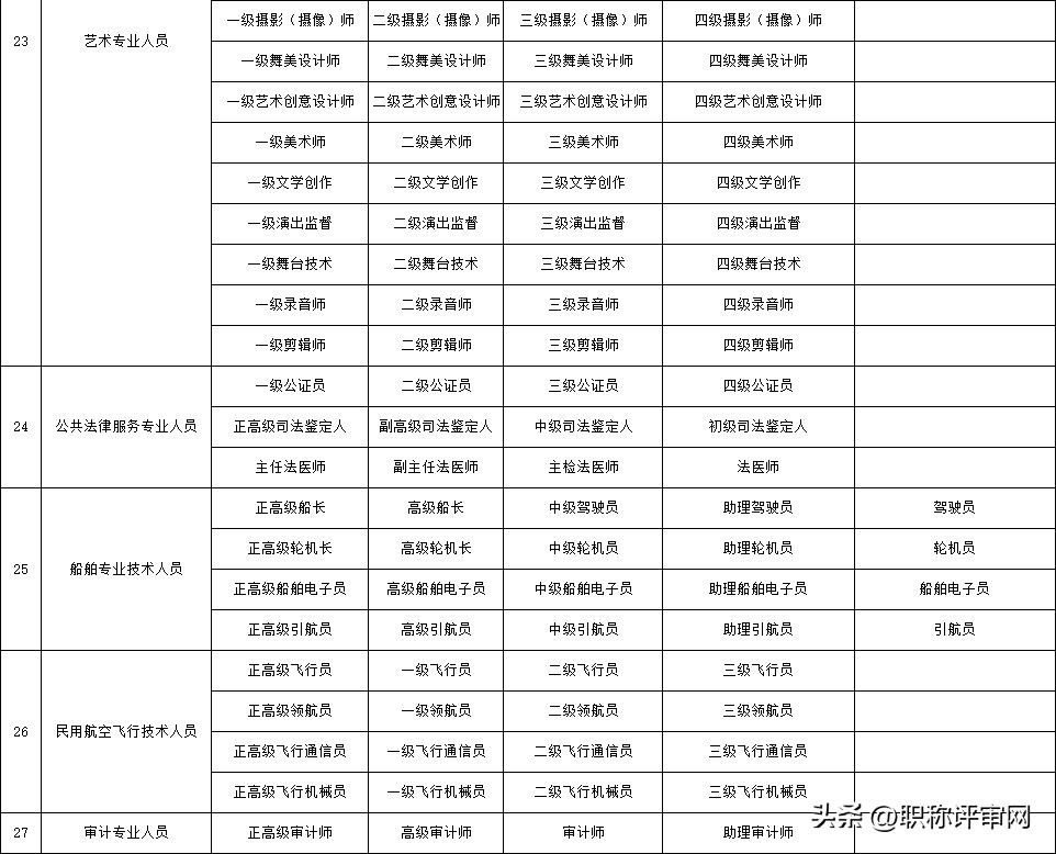 这些都是不同专业领域的职称,我国职称目前总共有27个系列