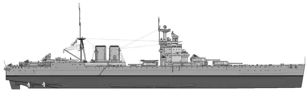 排水量35000吨,装备有4座双联装安萨尔多M1914型40倍径15英寸主炮,18门6英寸副炮,一定数量的24-76毫米高炮,最大航速为28节。未被选中的原因:虽然这次把主炮换成了双联装,35000吨的排水量终于能塞下了,但经费还是不足。