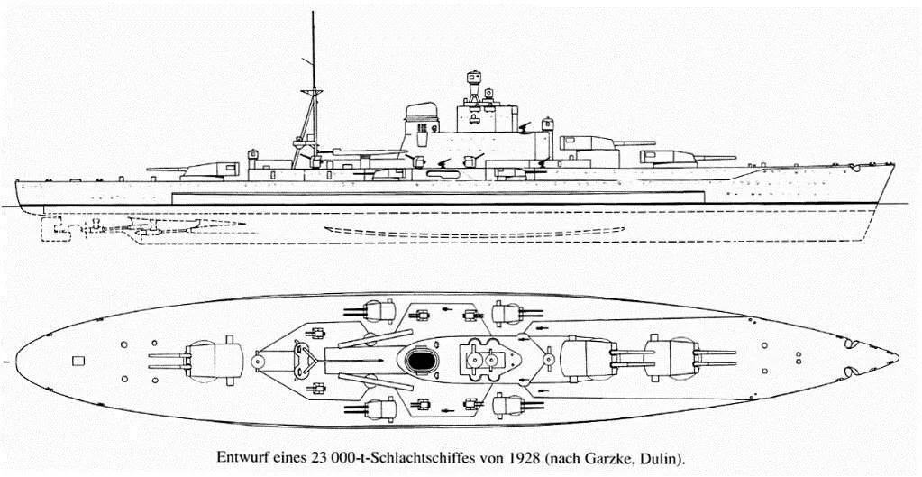 于是在1933年,安萨尔多公司在参考了德国海军的德意志级袖珍战列舰后,提出了一套18900吨级的袖珍战列舰方案。该方案共装备有2座三联装343毫米主炮,4座双联装6英寸副炮,以及10具水下鱼雷发射管,不过最大航速仅有26节。