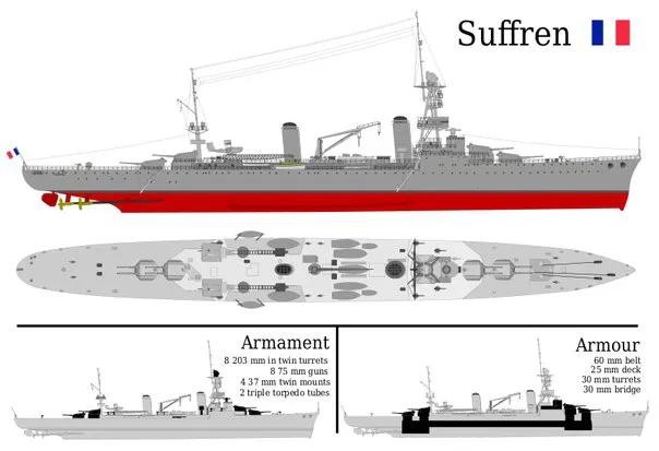 在这段时间内,法国建造了絮弗伦级等众多巡洋舰