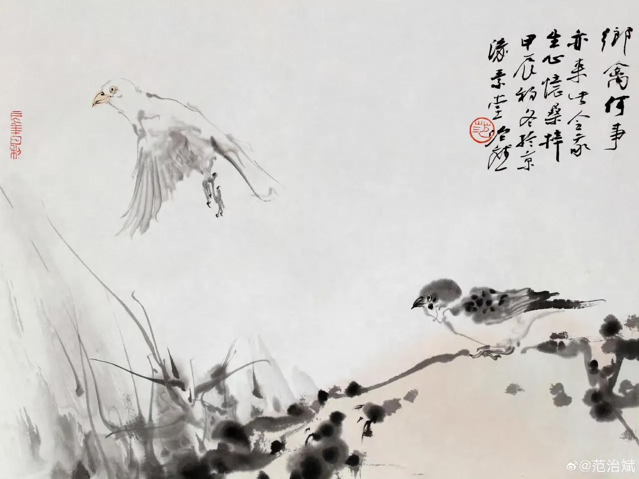 300幅著名画家范治斌先生水墨禽鸟类作品欣赏,收藏学习吧!